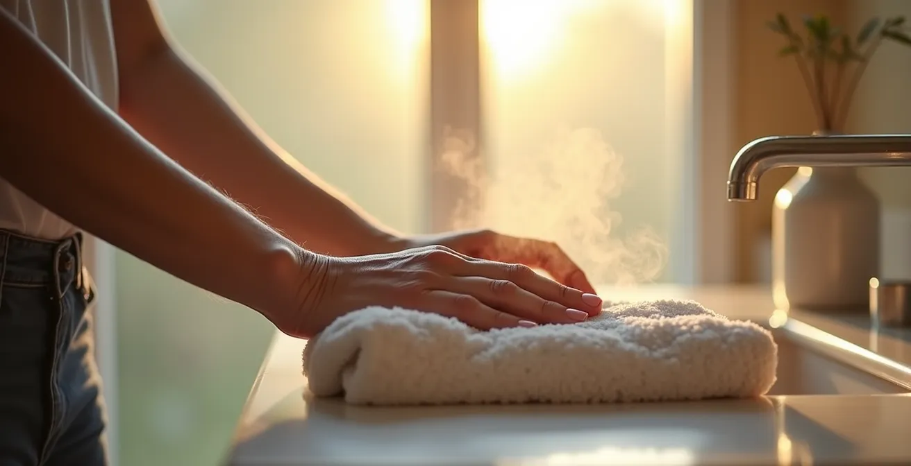 La stratégie ne se limite pas à monter le thermostat. Il s’agit de penser à un confort multi-sensoriel. Cela commence par s’assurer que la pièce est à une température d’au moins 22-24°C, sans le moindre courant d’air. L’utilisation d’un petit radiateur d’appoint soufflant, stable et placé loin de tout point d’eau, peut être une solution efficace pour préchauffer rapidement l’espace. La chaleur doit aussi venir des objets en contact avec la peau : les serviettes, le gant et les vêtements de rechange doivent être systématiquement tiédis sur un sèche-serviette ou un radiateur avant utilisation. Le contact d’un linge chaud et doux est un puissant signal de réconfort.
